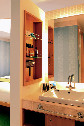 天井に灯る白い照明は、優しい満月のよう。ナチュラルな自分に戻って幸せな気分に。
