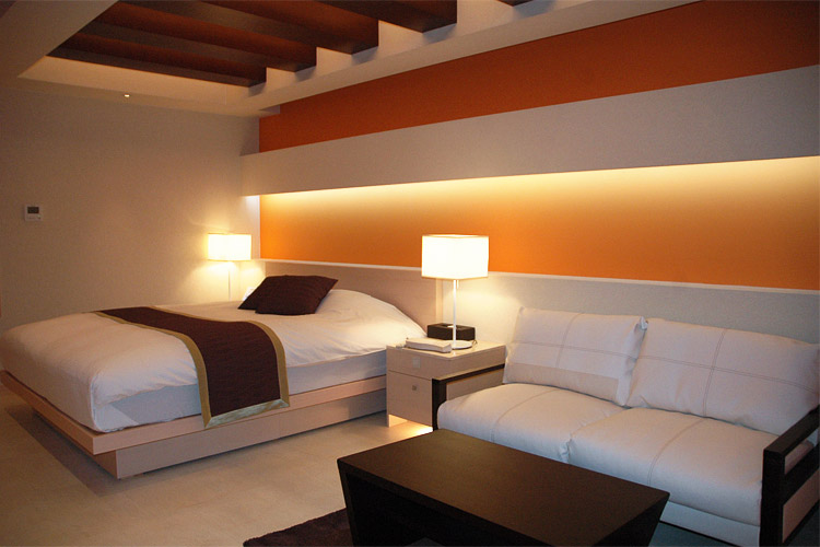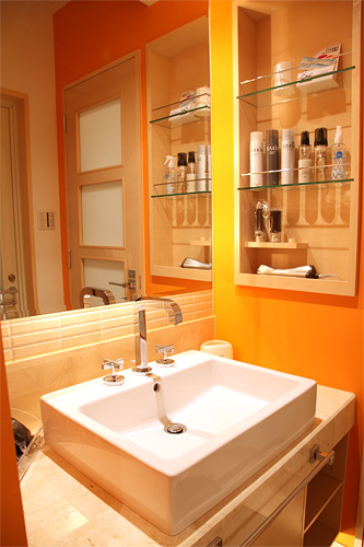 全体をオレンジカラーで暖かく彩り、自然と元気が出てくるビタミンサプリ的なお部屋です。